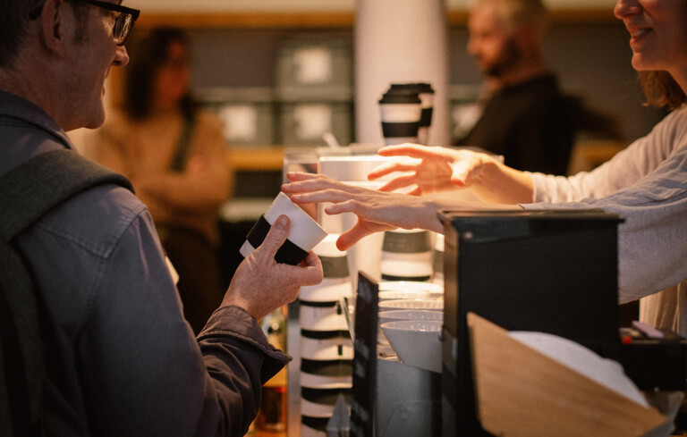 In March 2022, we stopped using single-use disposable cups in our shops. Instead, we offer takeaway coffee in a reusable Monmouth loan cup, your own cup or a ceramic cup.